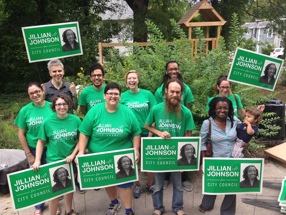 Featured Image: Jillian Johnson and her campaign team during her campaign for Durham City Council. Photo Credit: Jillian Johnson