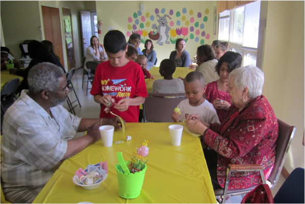In the first deployment of GOH’s housing model, the organization sought to address child welfare and senior quality of life from a perspective that contrasts to what it calls the “philosophy of residualism“; a perspective that pervades traditional methods of care and treats both groups as liabilities. Instead of seeing foster kids as victims of circumstance and seniors as victims of age, both groups are seen as agents of change in the world around them. Foster children need stable environments. Seniors aid in healing children experiencing the pains of instability in this housing model by providing a sense of community, by being a constant in a child’s life, and by helping foster parents address issues that are new and unexpected. On the other end of this relationship, seniors who rent in this community not only gain a sense of purpose from their help with both foster children and parenting, they establish meaningful relationships that happen as a result of intentional programing from community staff, contributing to an overall healthy and positive quality of life.