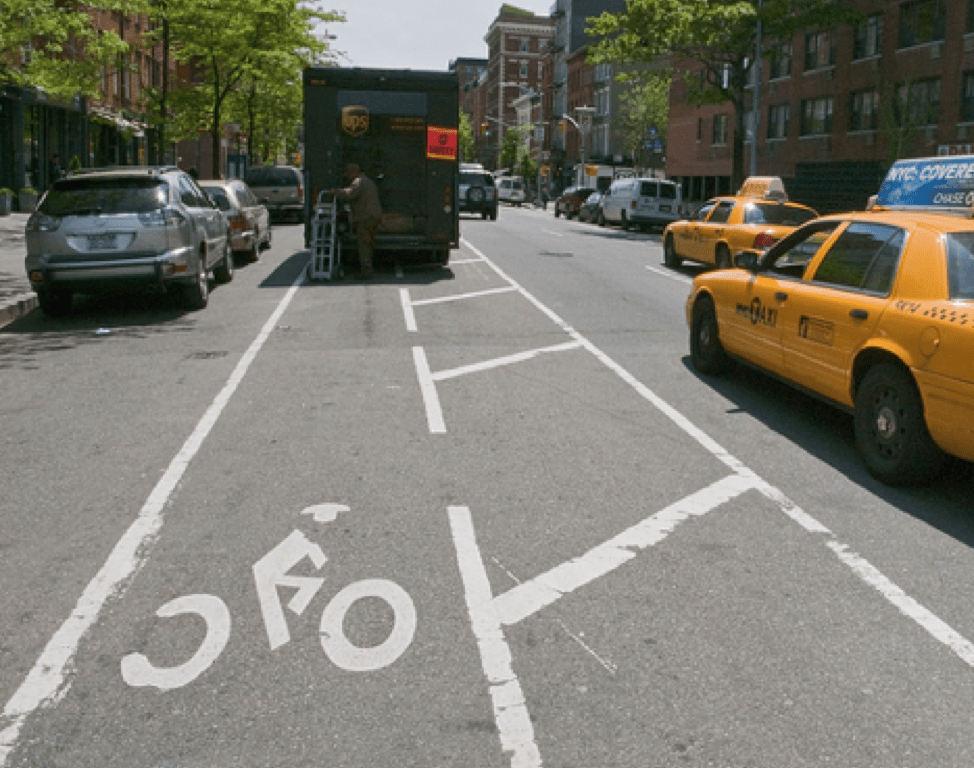 Featured Image: Double-parked UPS delivery truck in a bike lane in New York City, Photo credit: Richard Drdul in Flickr Creative Commons.