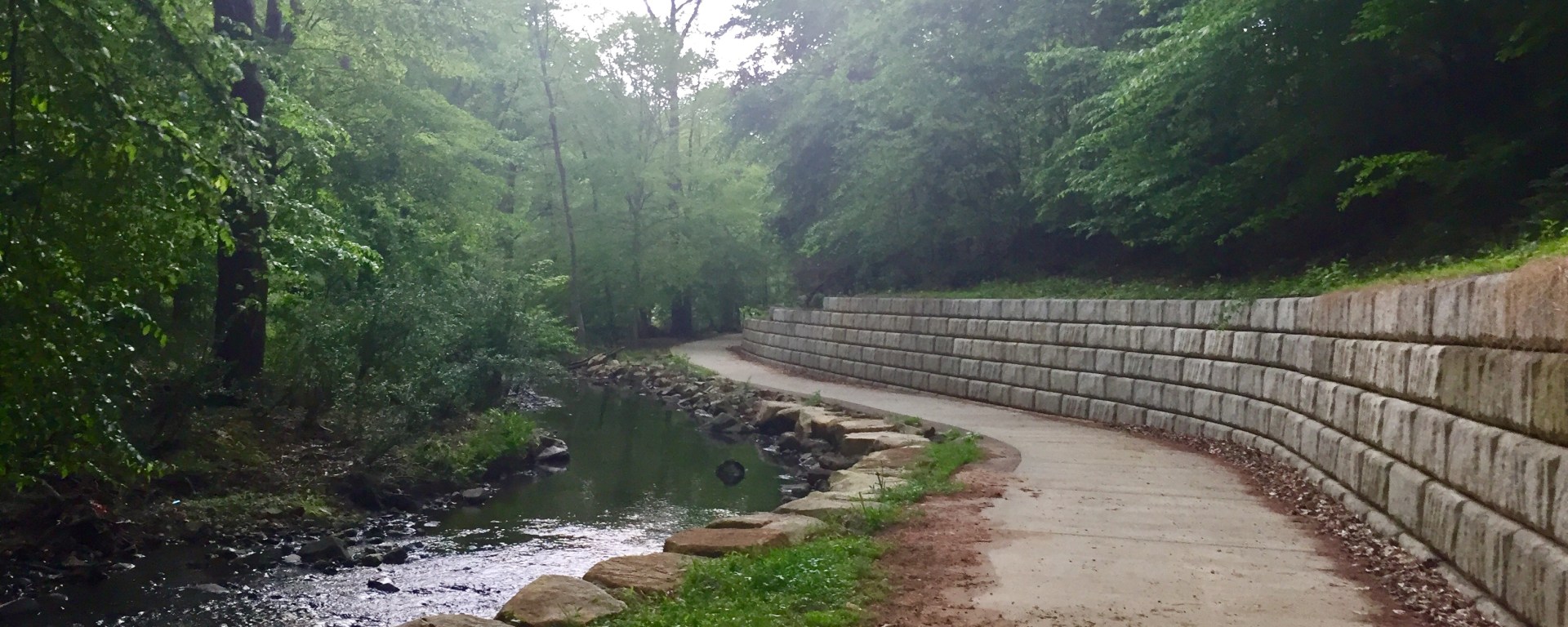 This segment of the Bolin Creek Trail has been one of the most challenging trail construction efforts undertaken by the Town. Building along the steep slopes next to a major stream requires expert planning, engineering, and execution in order to protect the delicate environment of Bolin Creek.