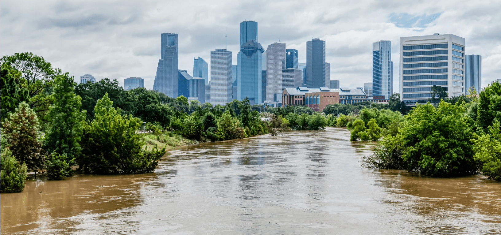 Featured image: A flooded Buffalo Bayou heading into downtown Houston (via Rice SSPEED Center)