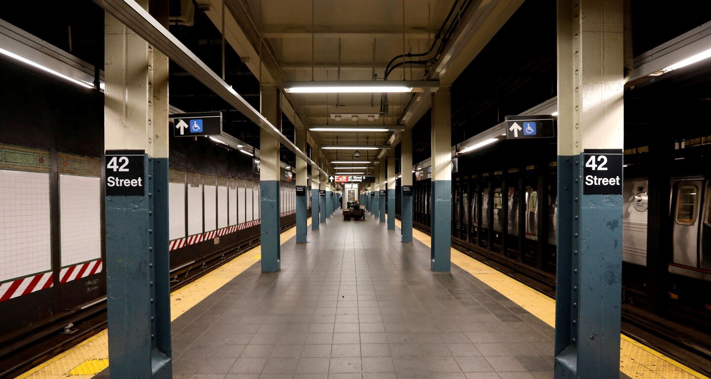 Featured Image: A nearly empty subway platform is seen at the 42nd Street station during the coronavirus outbreak in New York City. Credit: Mike Segar/Reuters via The Washington Post.