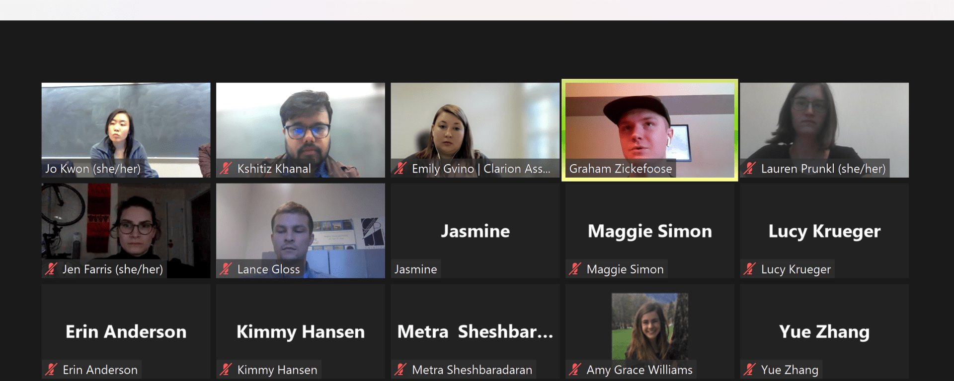 Last week PLAN 590: Master’s Project Proposal Development had a panel of past and present students to talk about their experiences of developing their Master’s Project (MP). The seminar-based course prepares first year master’s students to work on their MP. The panel included Lance Gloss (second year student at DCRP), Graham Zicekefoose (second year student at Eastern Washington University), Lauren Prunkl (DCRP Class of 2022, Transportation Analyst at Kittelson & Associates in Charlotte), and Emily Gvino (DCRP Class of 2021, Planner at Clarion Associates in Chapel Hill).