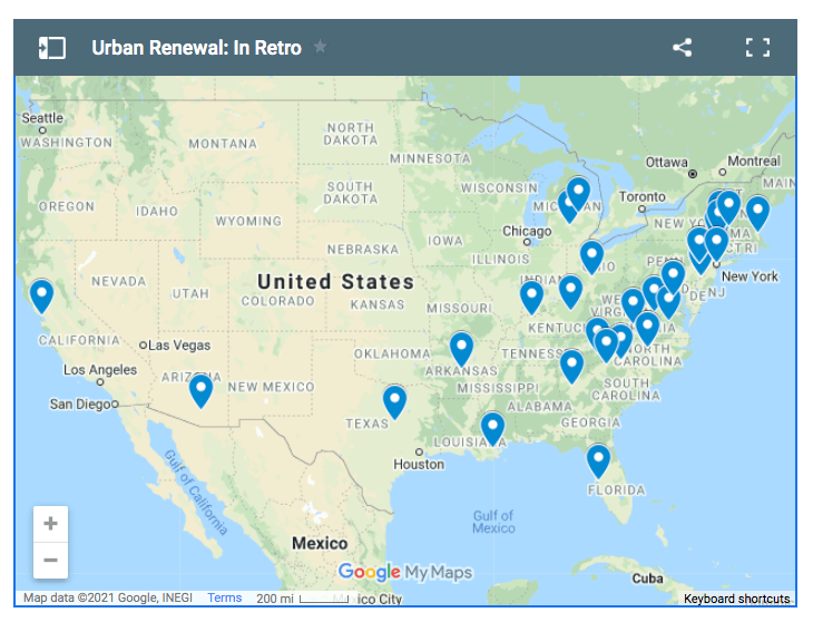 By Lindsay Oluyede Between 1955 and 1966, U.S. cities reported displacing approximately a third of a million families for urban renewal projects. As noted by researchers at the University of Richmond, their homes were razed to clear land for redevelopment that included “new, sometimes public housing, more often private, or for other purposes like the development of department stores or office buildings.”[i] The displaced families … Continue reading New Website Highlights Communities’ Perspectives on Urban Renewal